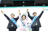 <Á¤Ä¡ÇöÀÚ> ´õ¹ÎÁÖ »õ ´ëÇ¥ Ã߹̾Ö, 30%P °ÝÂ÷ ¾ÐµµÀû ½Â¸® "°øÁ¤ÇÑ ´ë¼±Èĺ¸ °æ¼± ÁöÄѳ¾ °Í" ¼ÛÇö¼·, ¾çÇâÀÚ, ±èº´°ü µî ¼±Ãâ ÃÖ°íÀ§¿ø Ä£...